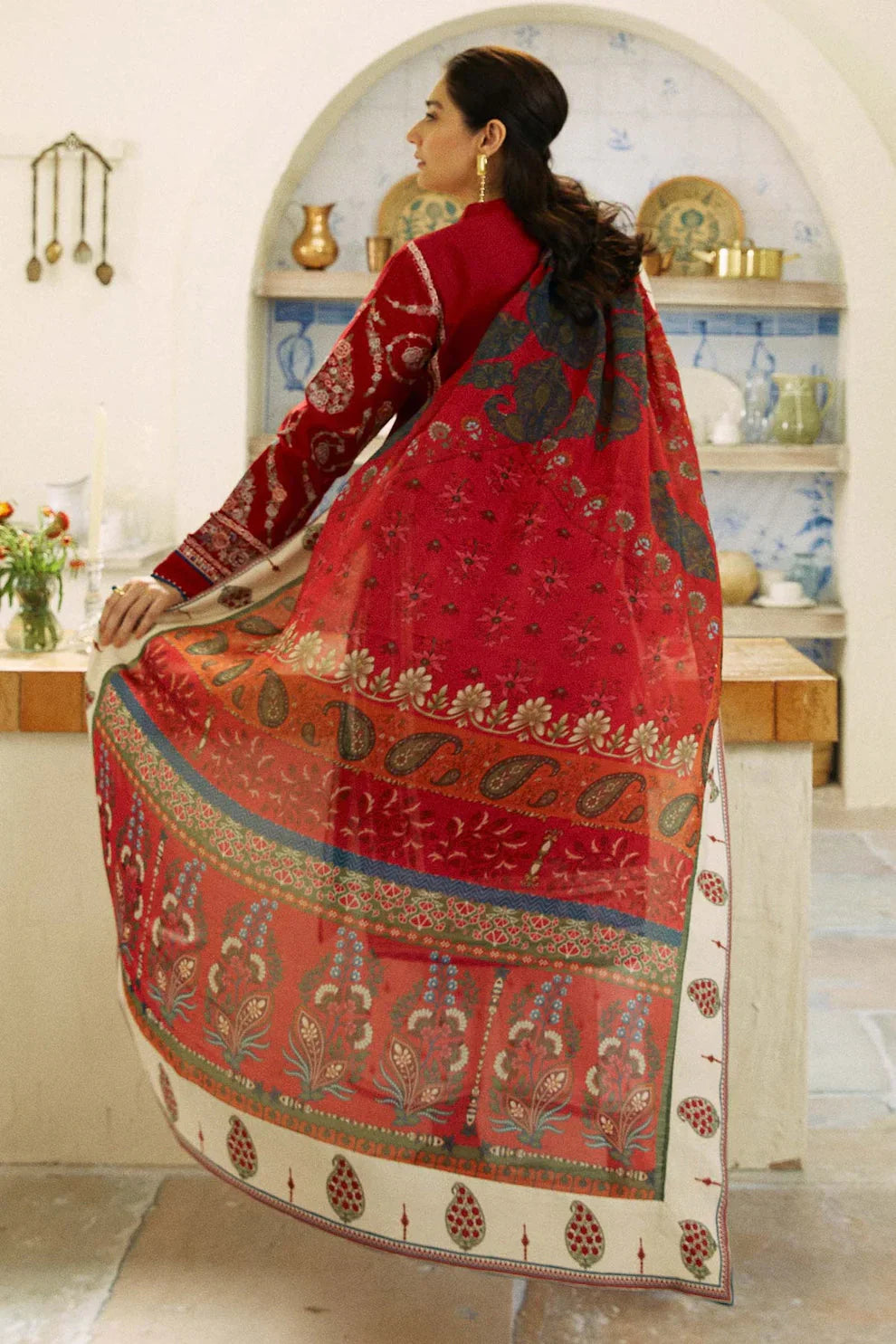 Dhanak 3PC Embroidered Shirt With Digital printed wool shawl-659